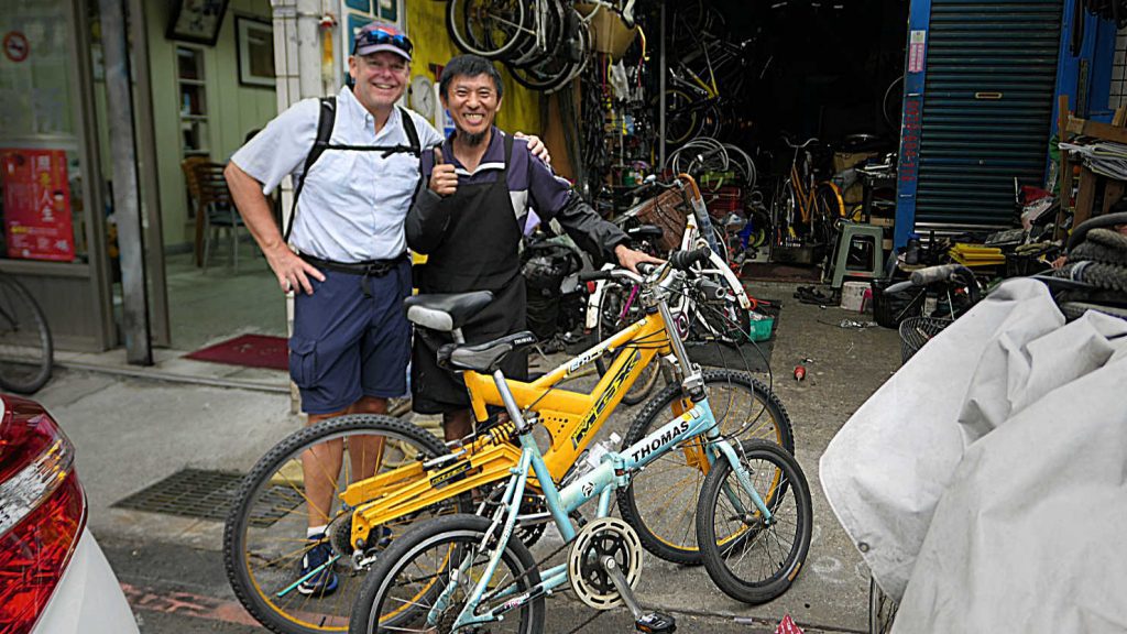 Our bikes in Hualien. These bikes were name brand “Giant” bicycles and in much better condition than the previous ones we had rented in Yilan. Plus, the “Giant” brand bike shops give business cards with instructions to call them if any problems occur.