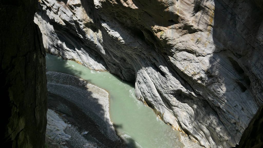 View looking down at the river in Swallow Grotto. The area is named for the large number of swallows which live in holes on the rock wall across the way. It was impossible to photograph the small swallows gliding around the gorge in the constant updraft.