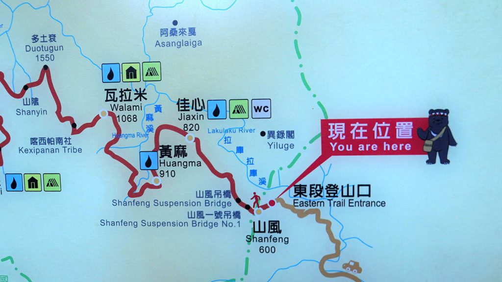 Here’s “Bravo” the black bear again, this time he’s showing us where we are on the Walami Trail map. We hiked the shorter “non-permitted” Jiaxin section of the Walami Trail. The full trail requires permits which need to be applied for in advance.