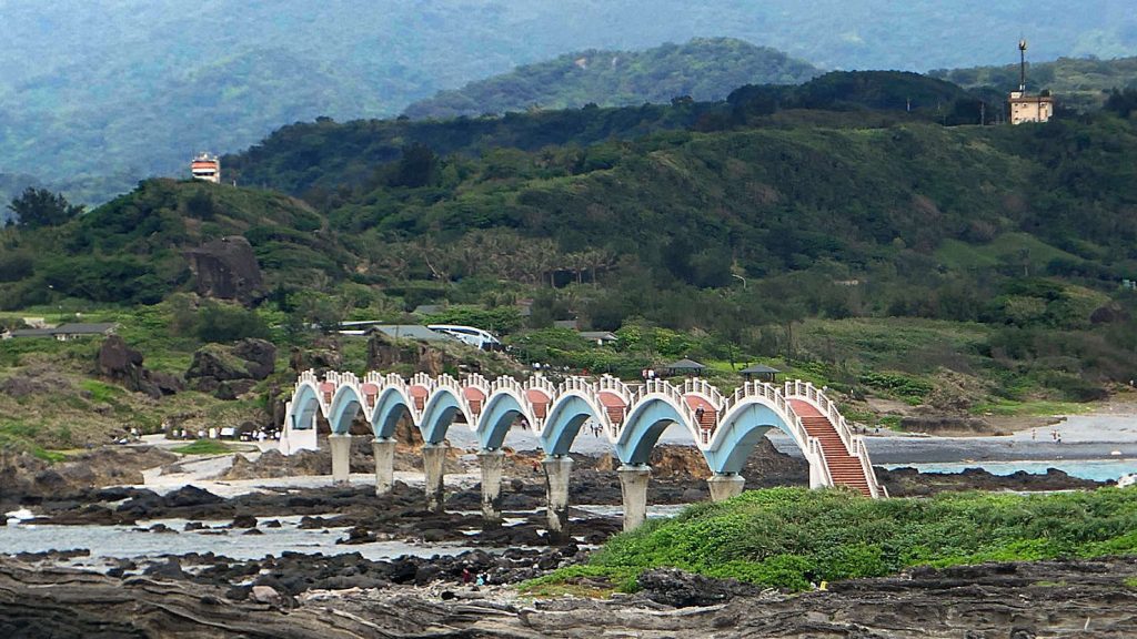 The Sanxiantai bridge is the most famous landmark on the East Coast of Taiwan and is composed of offshore islands and coral reefs.
